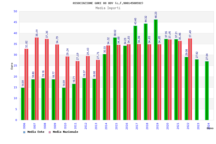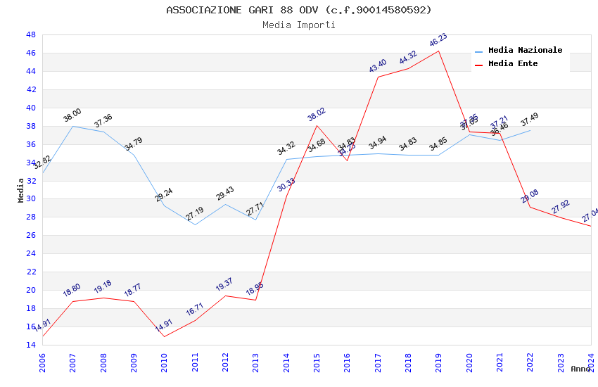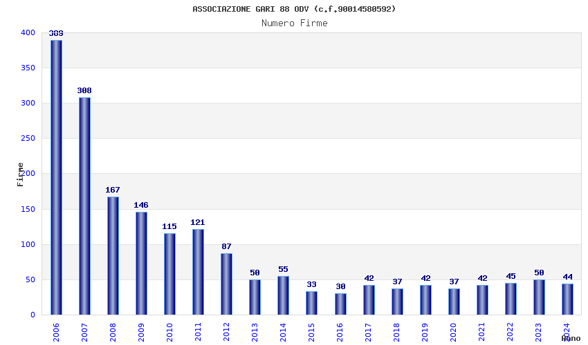 | Anno | Firme | Importi | Media | Naz. | Reg. | Prov. | Comu. |