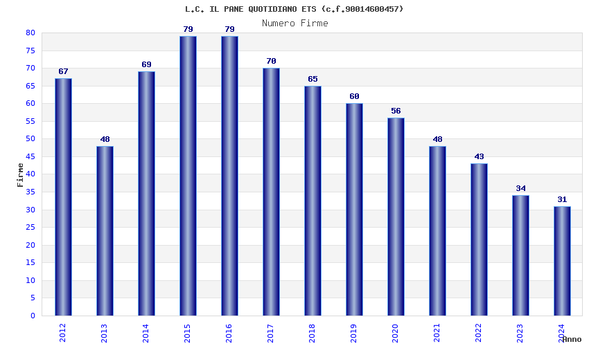 | 2015 | 79 | 5.020,00 | 63,54 | 10.598 | 699 | 30 | 3 |