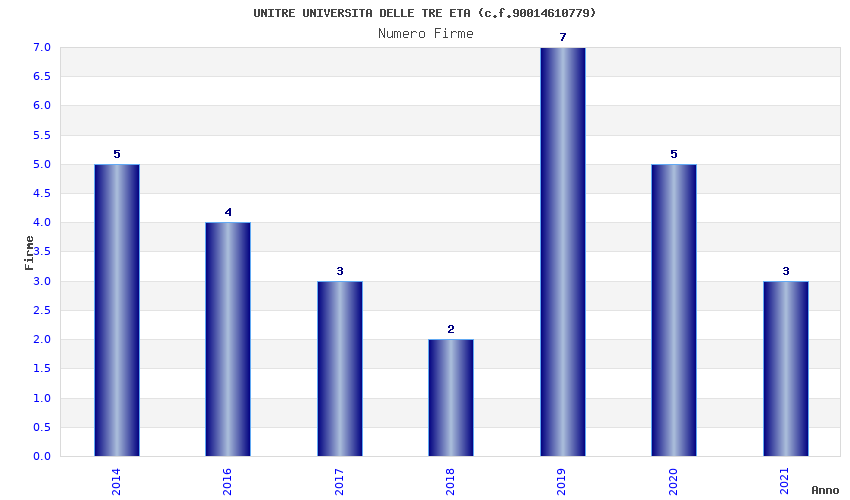 | Anno | Firme | Importi | Media | Naz. | Reg. | Prov. | Comu. |