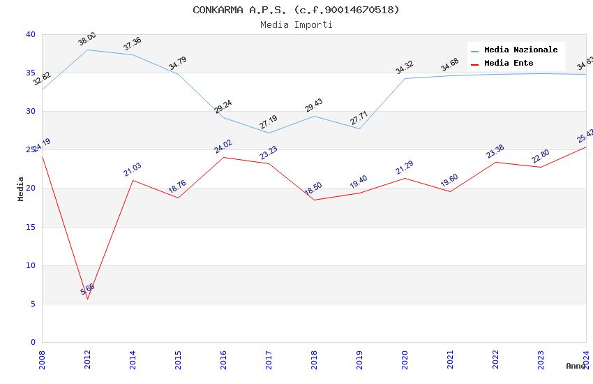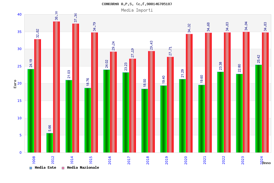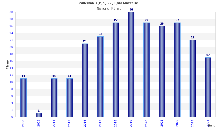 | Anno | Firme | Importi | Media | Naz. | Reg. | Prov. | Comu. |
