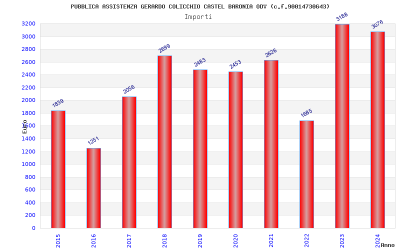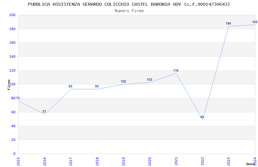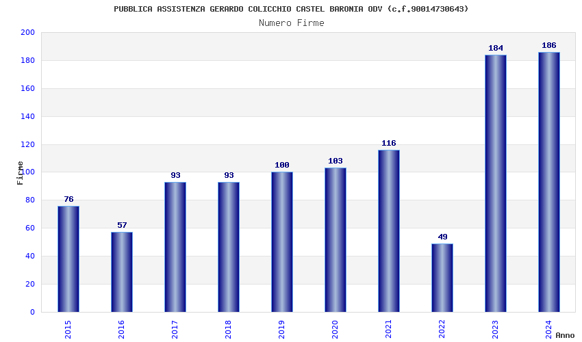 | Anno | Firme | Importi | Media | Naz. | Reg. | Prov. | Comu. |