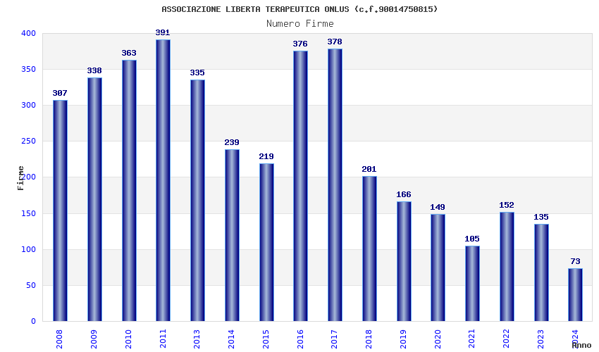 | Anno | Firme | Importi | Media | Naz. | Reg. | Prov. | Comu. |