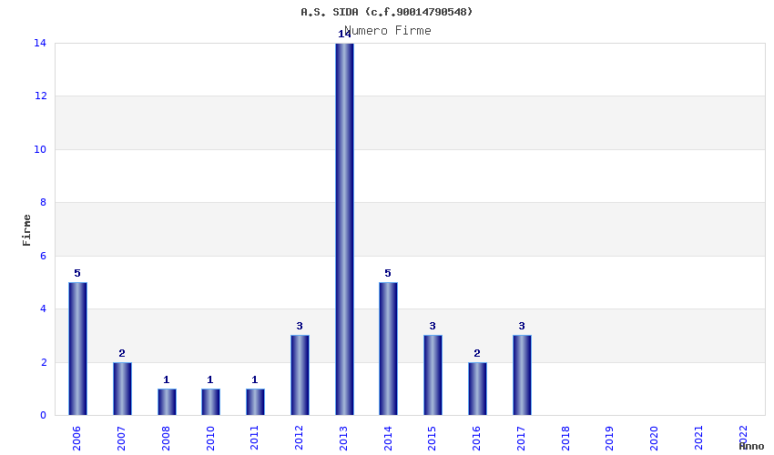| Anno | Firme | Importi | Media | Naz. | Reg. | Prov. | Comu. |