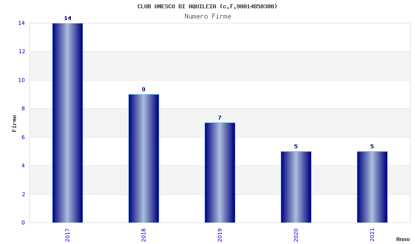 | Anno | Firme | Importi | Media | Naz. | Reg. | Prov. | Comu. |