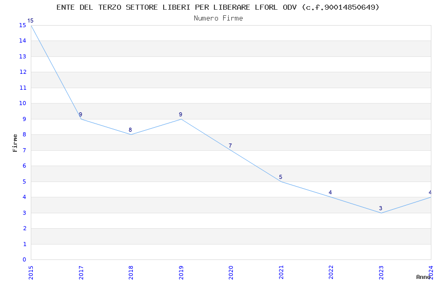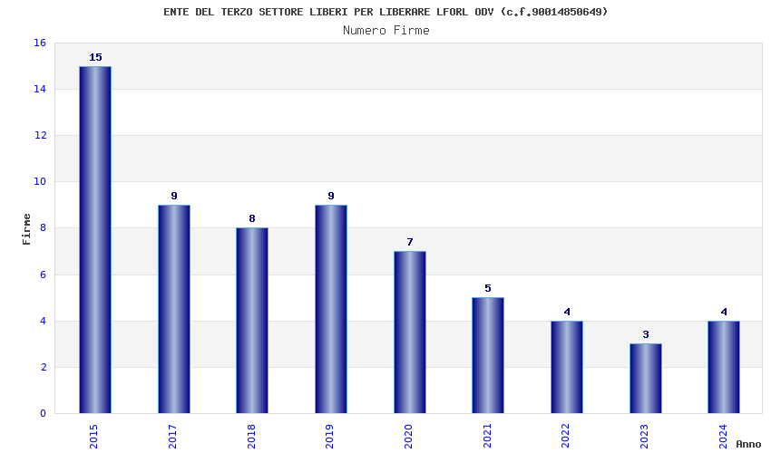 | Anno | Firme | Importi | Media | Naz. | Reg. | Prov. | Comu. |