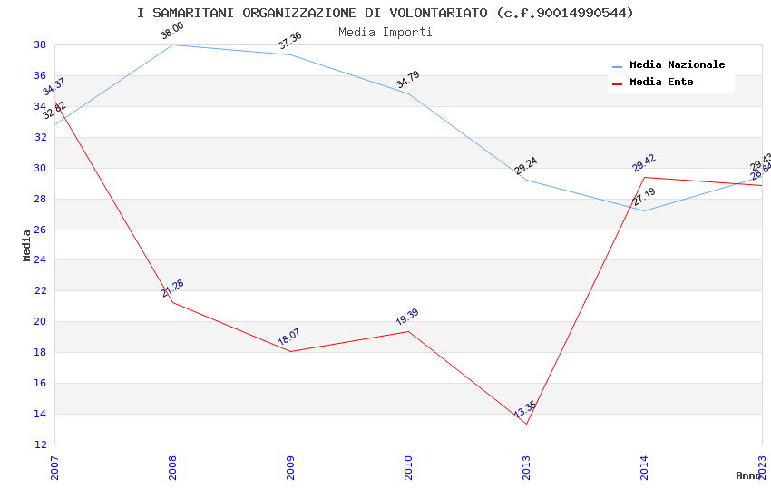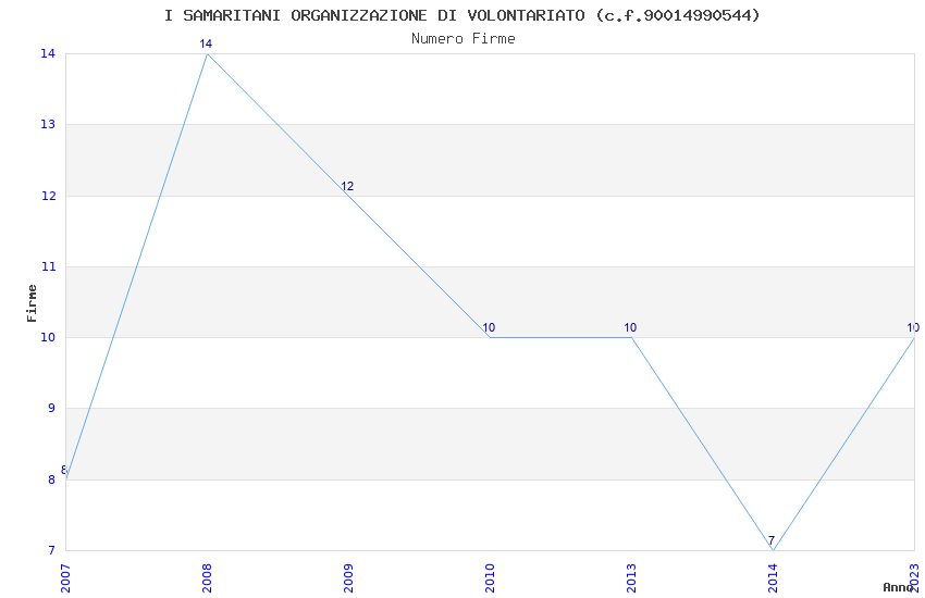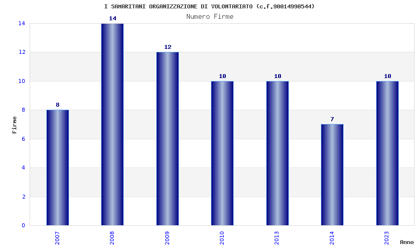 | Anno | Firme | Importi | Media | Naz. | Reg. | Prov. | Comu. |