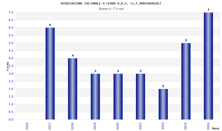 | Anno | Firme | Importi | Media | Naz. | Reg. | Prov. | Comu. |