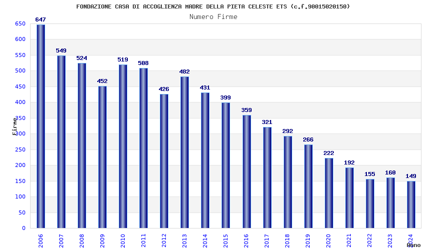 | Anno | Firme | Importi | Media | Naz. | Reg. | Prov. | Comu. |