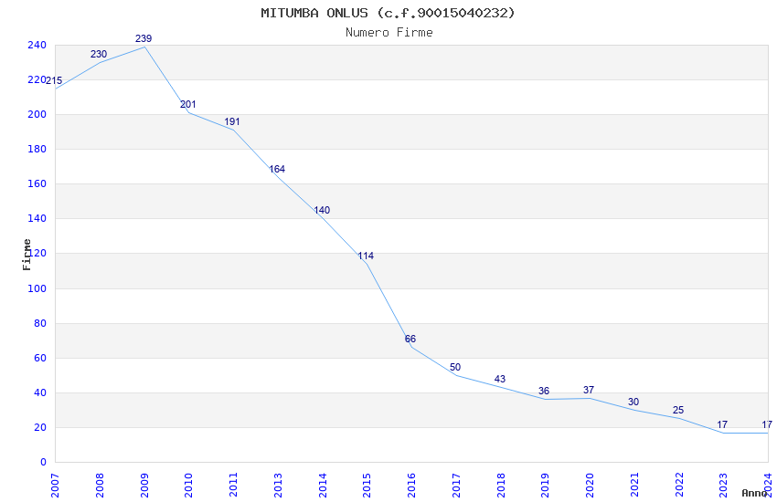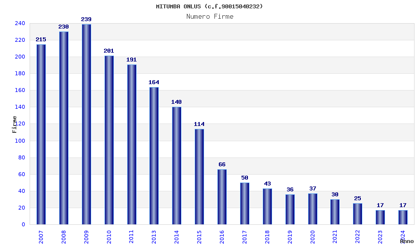 | 2017 | 50 | 1.658,96 | 33,18 | 26.390 | 2.470 | 487 | 5 |