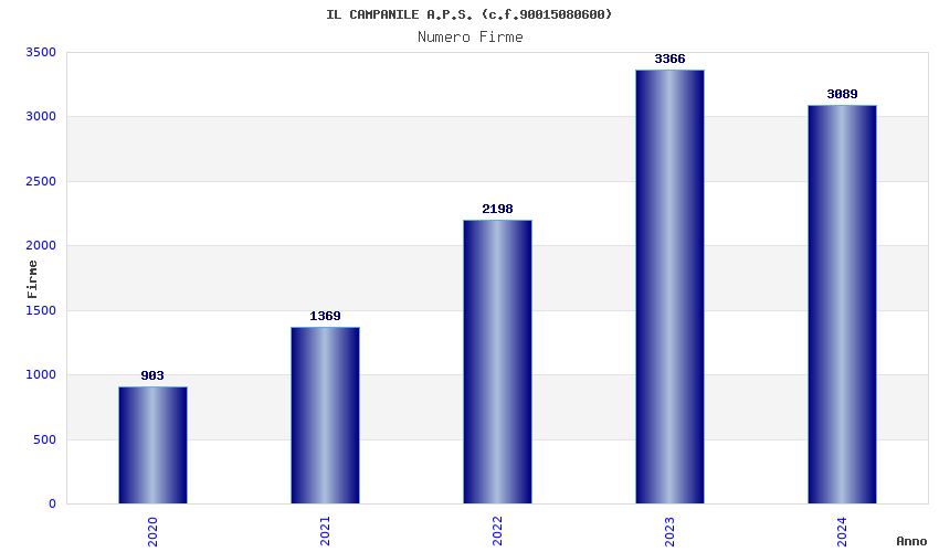| Anno | Firme | Importi | Media | Naz. | Reg. | Prov. | Comu. |