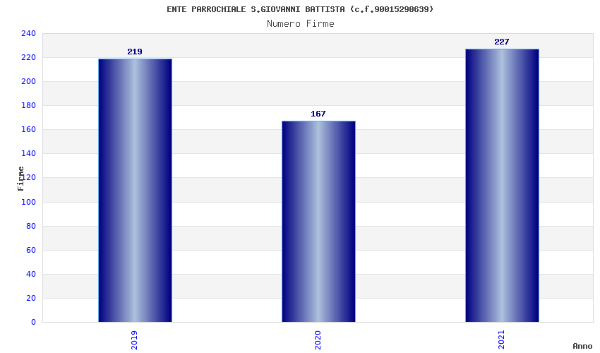 | Anno | Firme | Importi | Media | Naz. | Reg. | Prov. | Comu. |