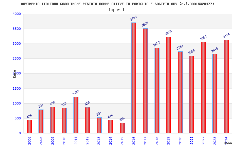 | Anno | Firme | Importi | Media | Naz. | Reg. | Prov. | Comu. |