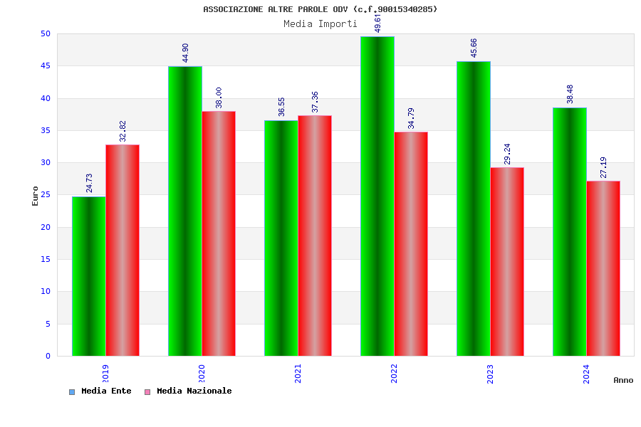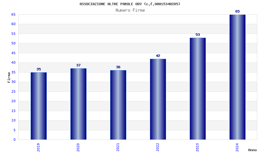 | Anno | Firme | Importi | Media | Naz. | Reg. | Prov. | Comu. |