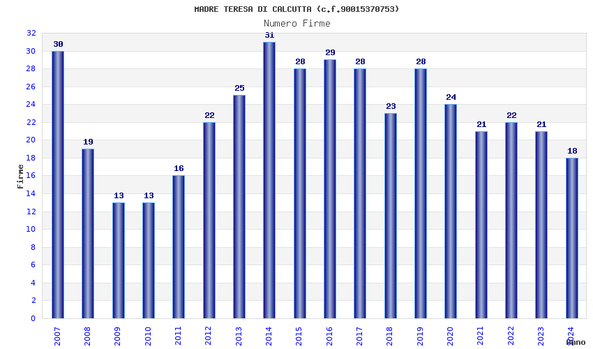 | Anno | Firme | Importi | Media | Naz. | Reg. | Prov. | Comu. |
