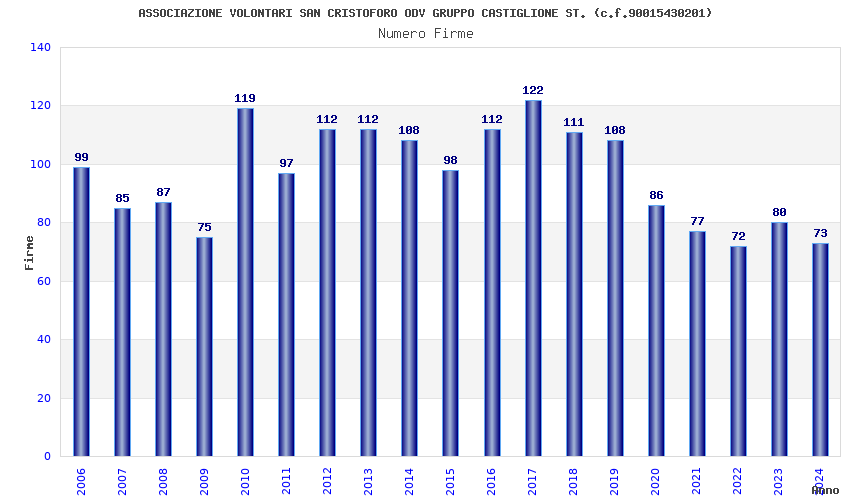 | Anno | Firme | Importi | Media | Naz. | Reg. | Prov. | Comu. |