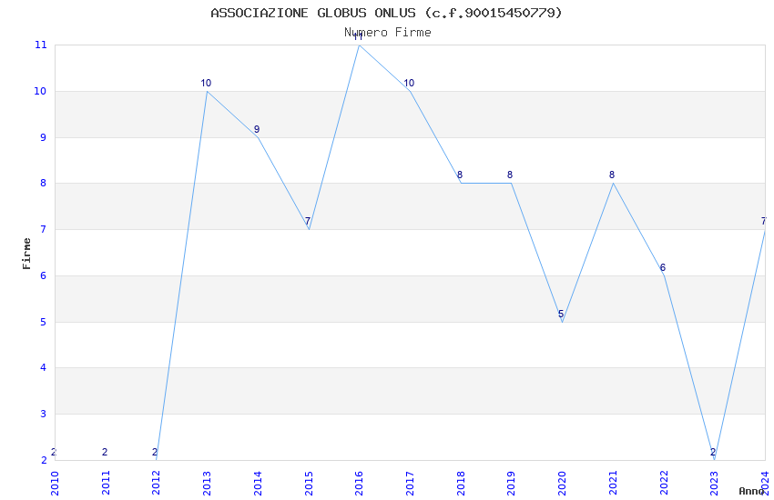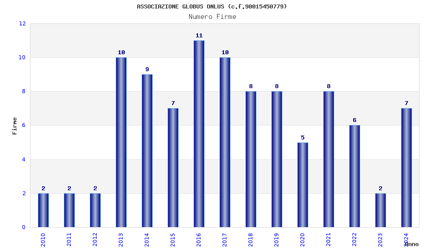 | Anno | Firme | Importi | Media | Naz. | Reg. | Prov. | Comu. |