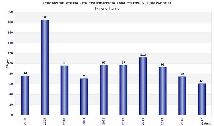 | Anno | Firme | Importi | Media | Naz. | Reg. | Prov. | Comu. |