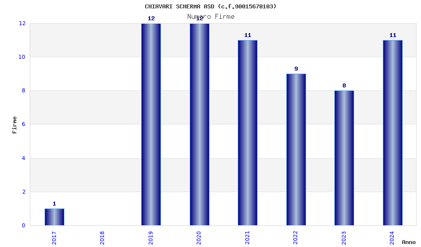 | Anno | Firme | Importi | Media | Naz. | Reg. | Prov. | Comu. |