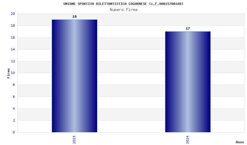 | Anno | Firme | Importi | Media | Naz. | Reg. | Prov. | Comu. |