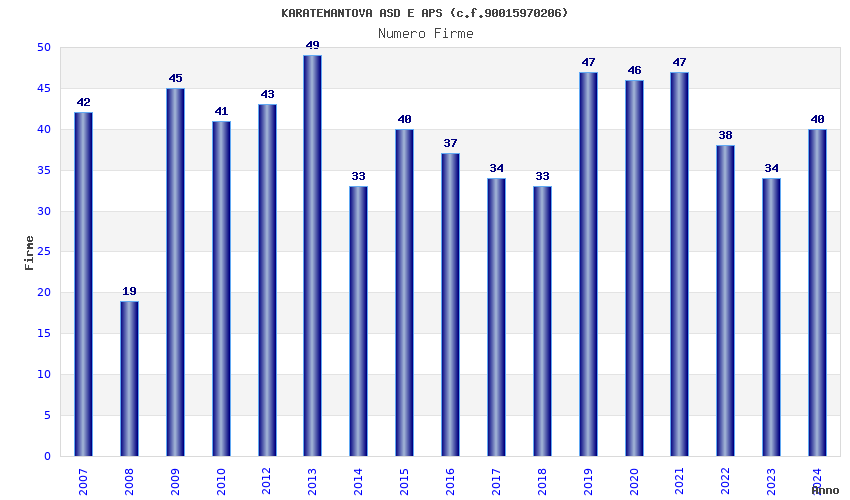 | 2019 | 47 | 1.173,11 | 24,96 | 32.867 | 7.122 | 241 | 3 |