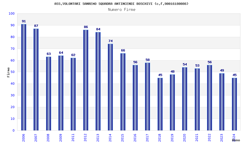 | Anno | Firme | Importi | Media | Naz. | Reg. | Prov. | Comu. |