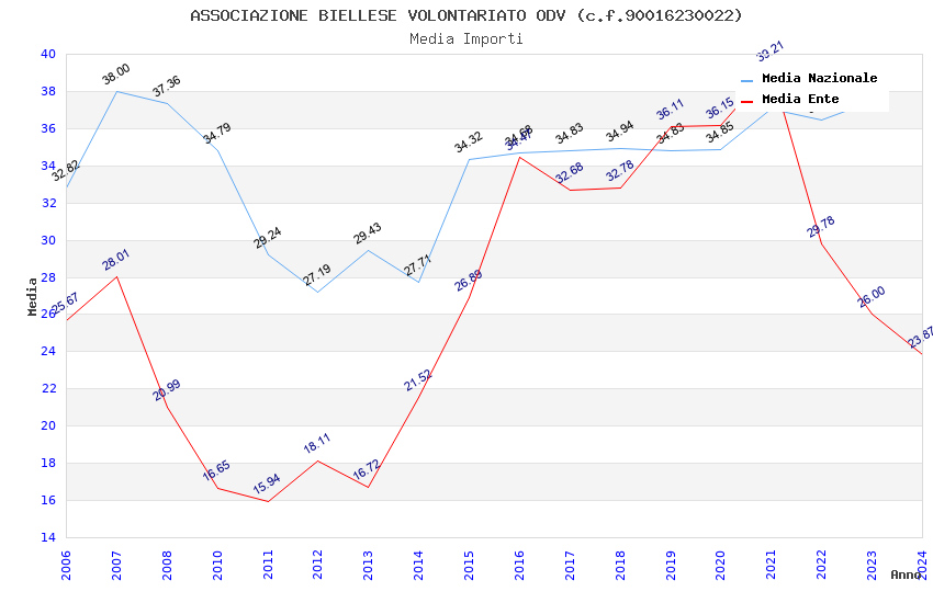 | Anno | Firme | Importi | Media | Naz. | Reg. | Prov. | Comu. |