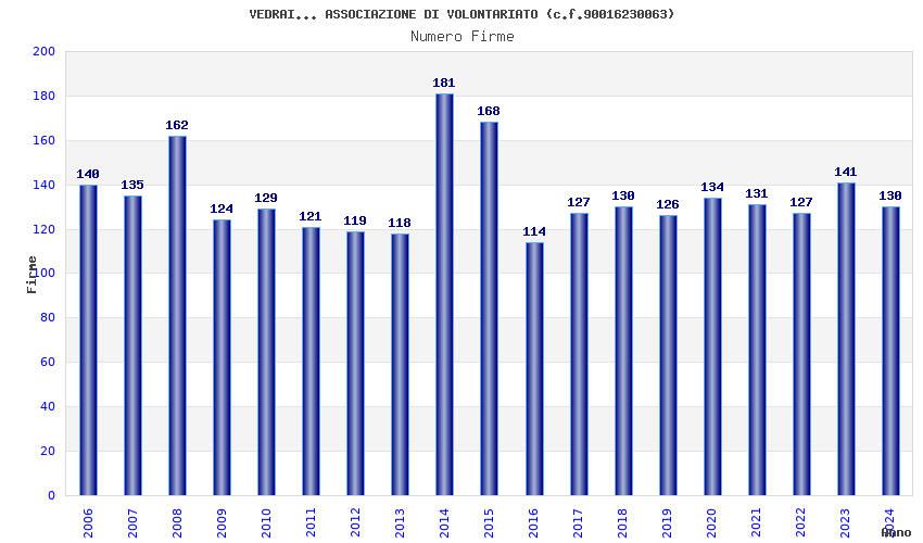 | 2018 | 130 | 4.816,77 | 37,05 | 11.500 | 823 | 69 | 3 |
