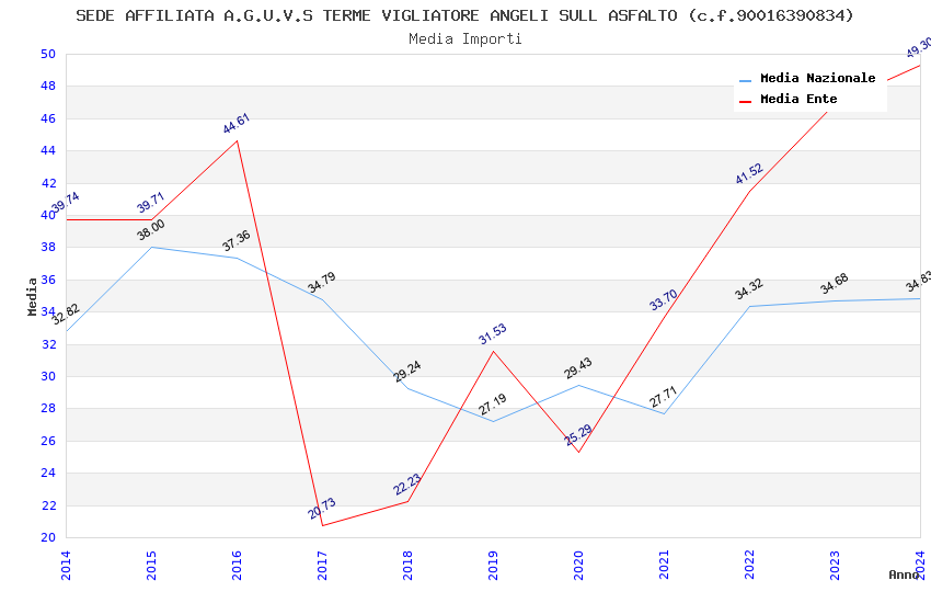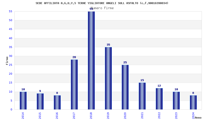 | Anno | Firme | Importi | Media | Naz. | Reg. | Prov. | Comu. |