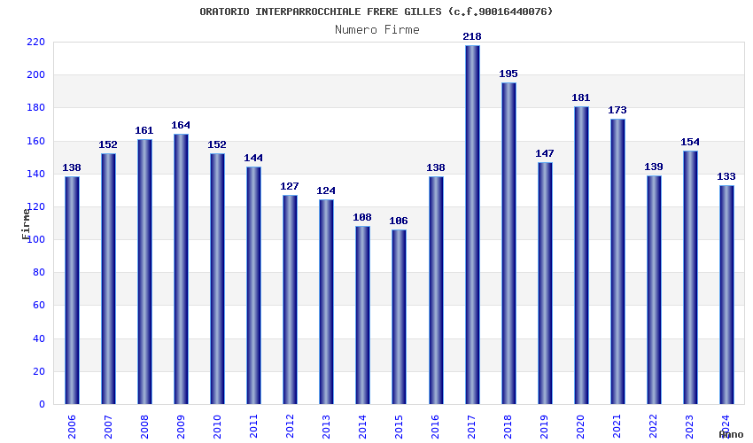 | Anno | Firme | Importi | Media | Naz. | Reg. | Prov. | Comu. |