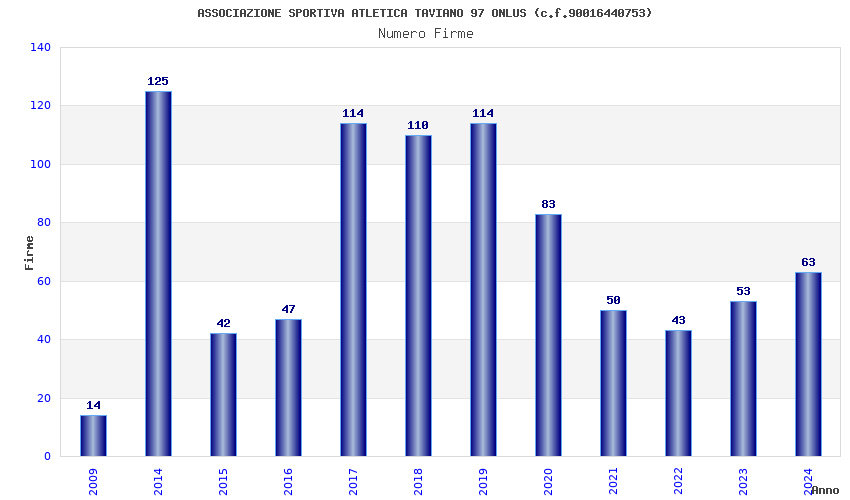 | Anno | Firme | Importi | Media | Naz. | Reg. | Prov. | Comu. |