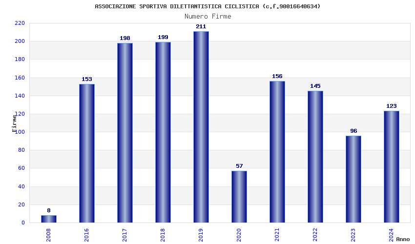 | Anno | Firme | Importi | Media | Naz. | Reg. | Prov. | Comu. |
