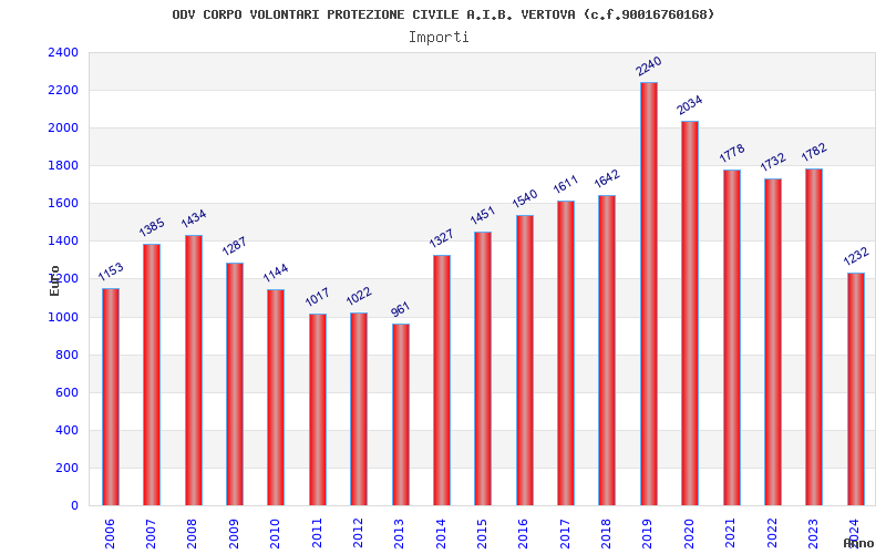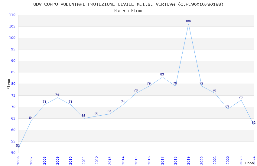 | 2024 | 62 | 1.232,47 | 19,88 | 33.379 | 6.814 | 764 | 6 |
