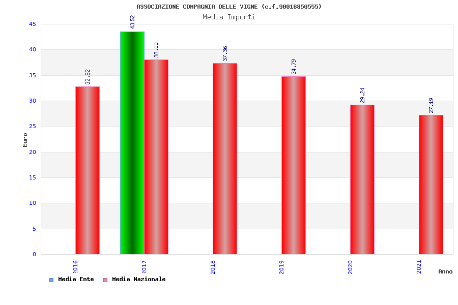 | Anno | Firme | Importi | Media | Naz. | Reg. | Prov. | Comu. |