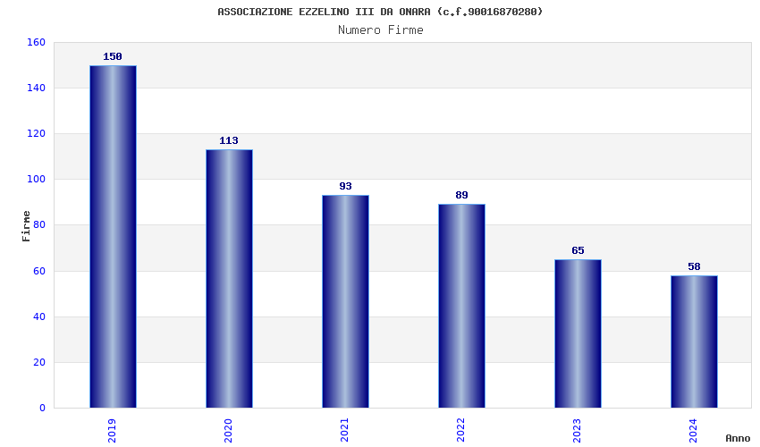 | Anno | Firme | Importi | Media | Naz. | Reg. | Prov. | Comu. |