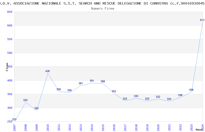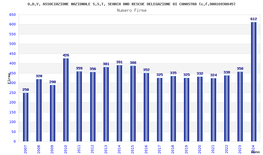 | 2017 | 325 | 5.150,97 | 15,85 | 10.786 | 618 | 50 | 1 |