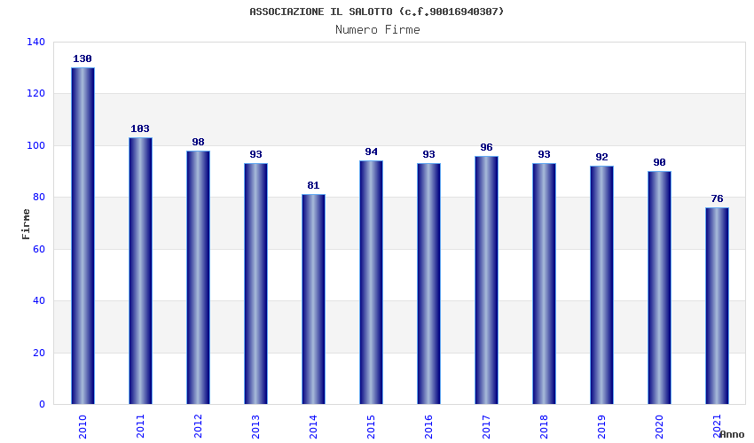 | Anno | Firme | Importi | Media | Naz. | Reg. | Prov. | Comu. |