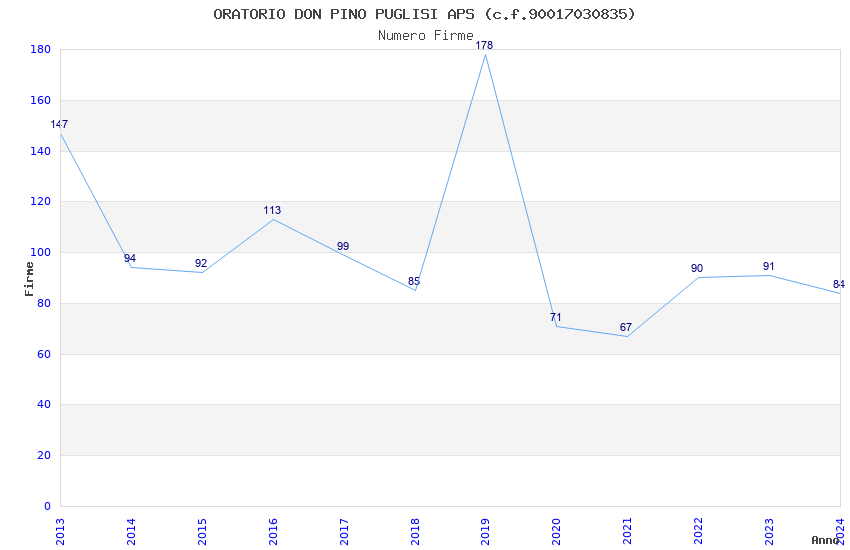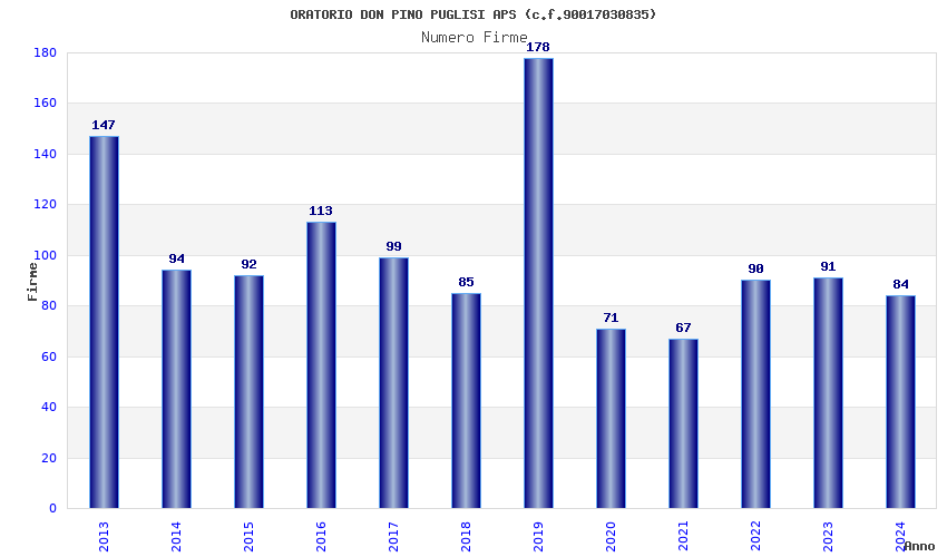 | Anno | Firme | Importi | Media | Naz. | Reg. | Prov. | Comu. |