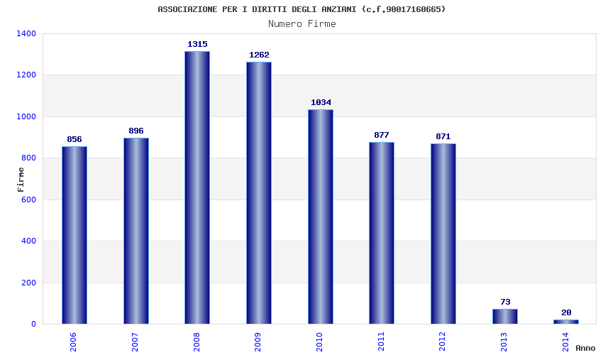 | Anno | Firme | Importi | Media | Naz. | Reg. | Prov. | Comu. |