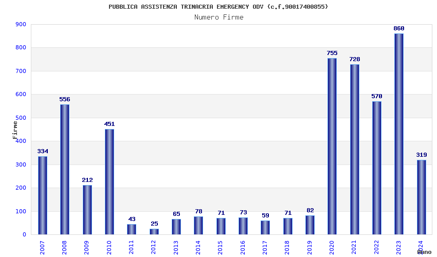 | Anno | Firme | Importi | Media | Naz. | Reg. | Prov. | Comu. |