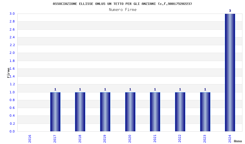 | Anno | Firme | Importi | Media | Naz. | Reg. | Prov. | Comu. |