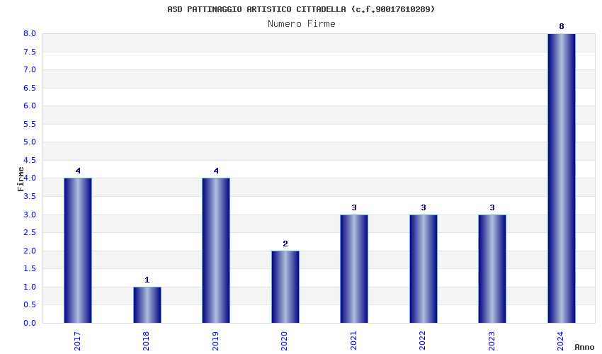 | Anno | Firme | Importi | Media | Naz. | Reg. | Prov. | Comu. |