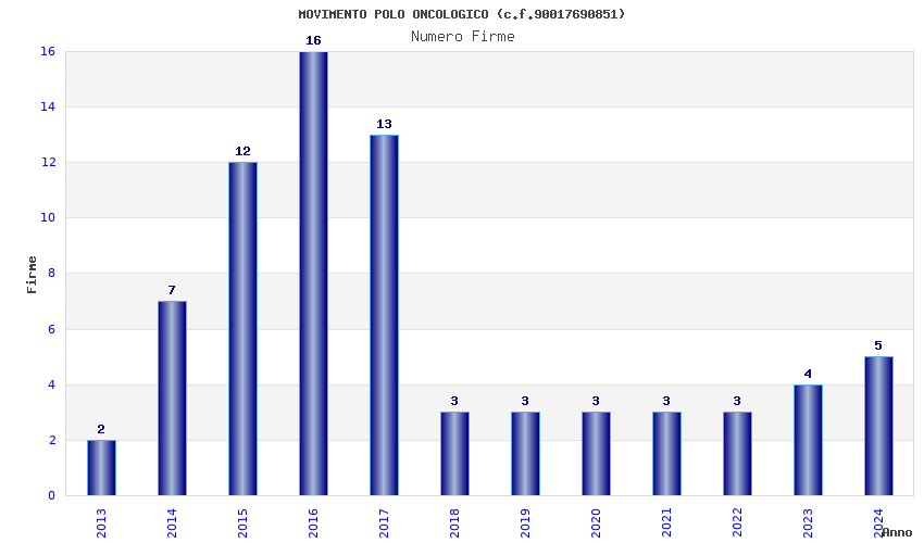 | Anno | Firme | Importi | Media | Naz. | Reg. | Prov. | Comu. |