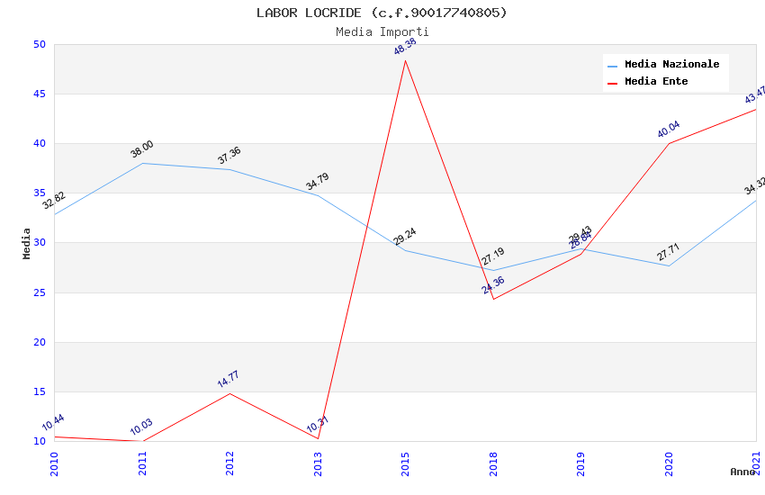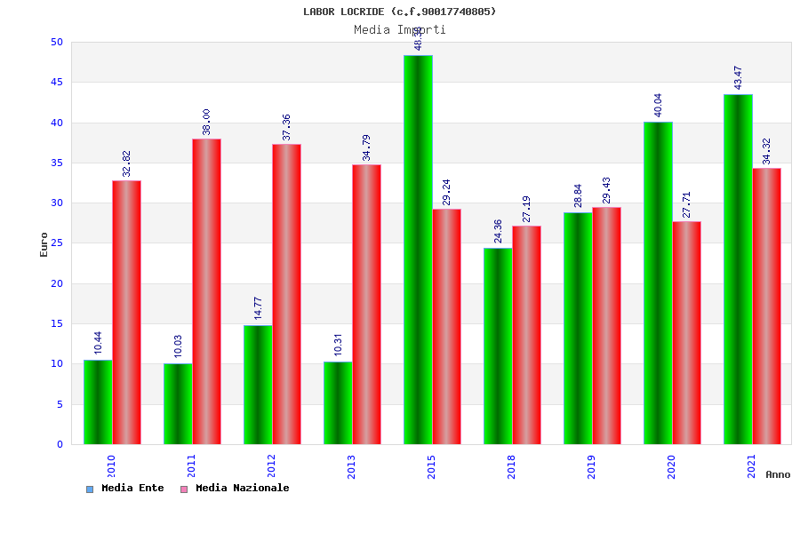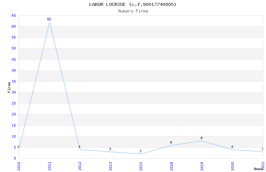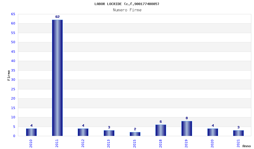 | Anno | Firme | Importi | Media | Naz. | Reg. | Prov. | Comu. |