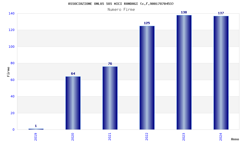 | Anno | Firme | Importi | Media | Naz. | Reg. | Prov. | Comu. |