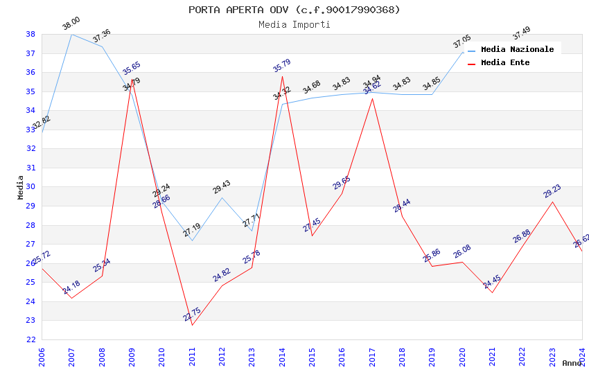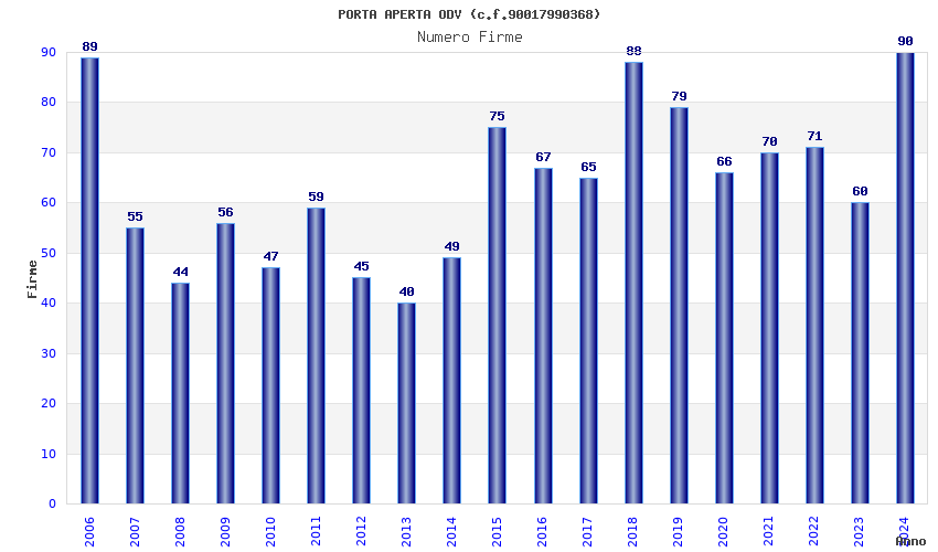 | Anno | Firme | Importi | Media | Naz. | Reg. | Prov. | Comu. |