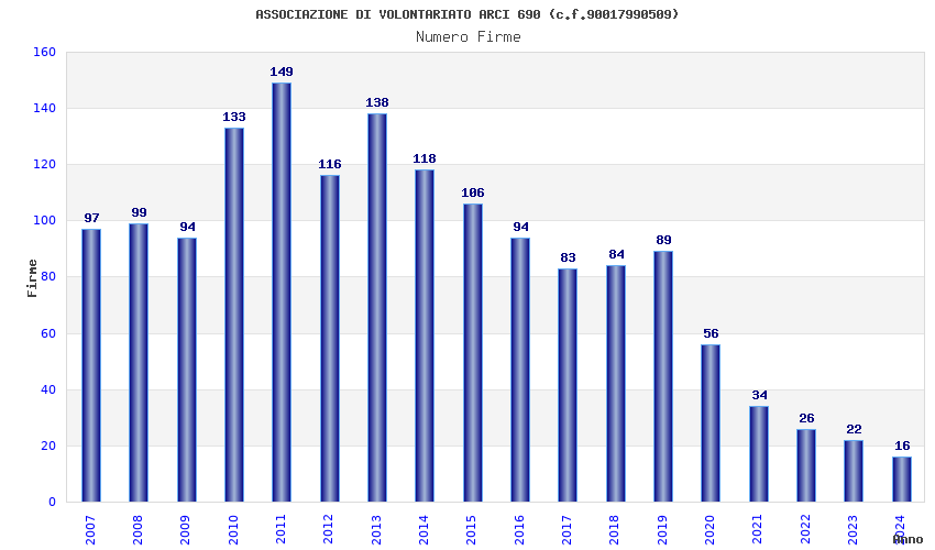 | Anno | Firme | Importi | Media | Naz. | Reg. | Prov. | Comu. |
