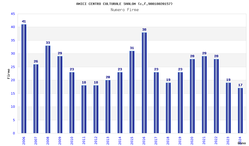 | Anno | Firme | Importi | Media | Naz. | Reg. | Prov. | Comu. |