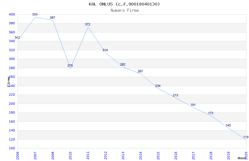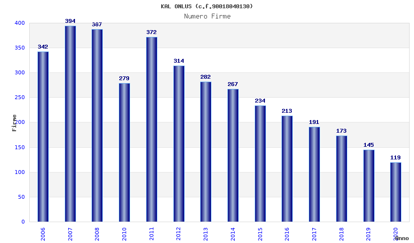 | Anno | Firme | Importi | Media | Naz. | Reg. | Prov. | Comu. |