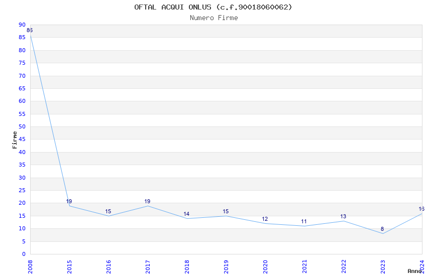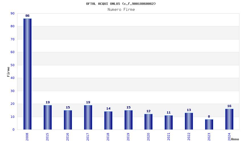 | Anno | Firme | Importi | Media | Naz. | Reg. | Prov. | Comu. |