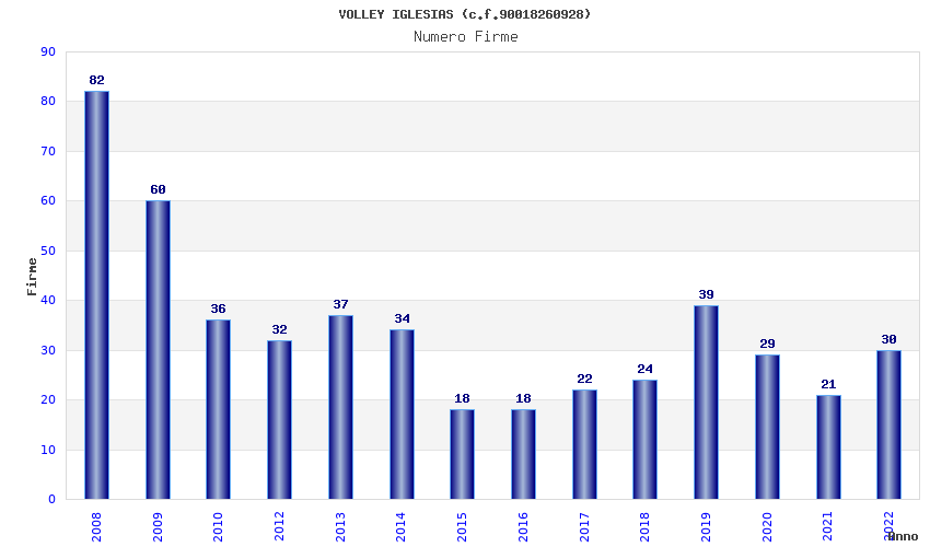 | Anno | Firme | Importi | Media | Naz. | Reg. | Prov. | Comu. |